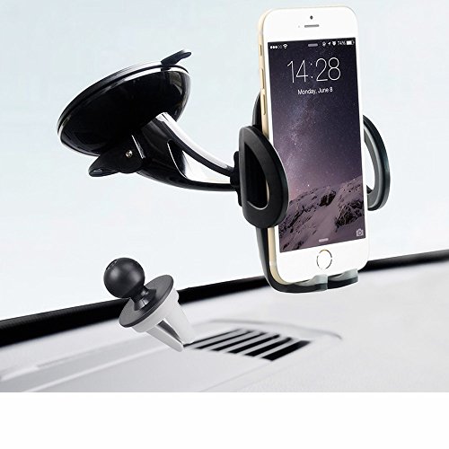 YYKY 2-in-1 Car Phone Holder,Air Vent Cell Phone Holder Mount Cradle Dashboard Windshield Universal for iPhone 7/7Plus/6s/6Plus/5S, Galaxy S5/S6/S7/S8, Google Nexus, LG, Huawei and More