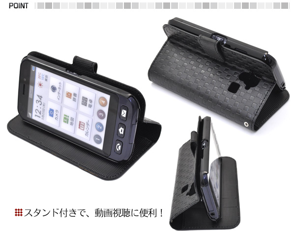 | シンプルスマホ 204SH用市松模様デザインスタンドケースポーチ(チェックレザーポーチ) | | | | |