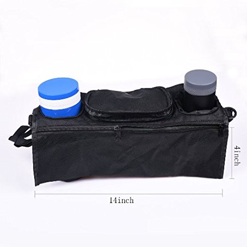 KLOUD City® Baby Stroller Organizer Accessory Bag Zipper Pouch for Cup Holder Cellphone Diaper Glasses with Velcro Hanger Strap