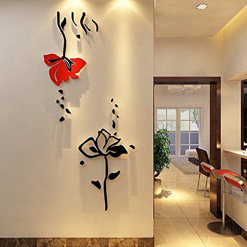 Ammybeddings 3D Red and Black Roses Flower Wall Stickers,Wall Decal,75*161cm(30*63in),Acrylic (75*161cm(30*63in)-12000328)