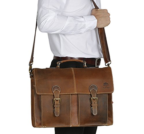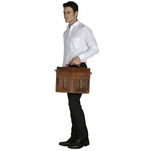 ✅Strong & Durable: Brass Fittings & Buckles, YKK Zippers, Elegant and Heavy Duty Lining ... Built to Last: This leather satchel features quality stitching, brass buckles & strong zippers. Ultra-durable, reliable & secure. Even has heavy-duty canvas & Velcro strap to protect contents.