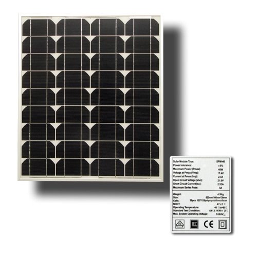 -. Title : 40watt Mono Crystalline Solar Panel in Anodized Aluminum Frame