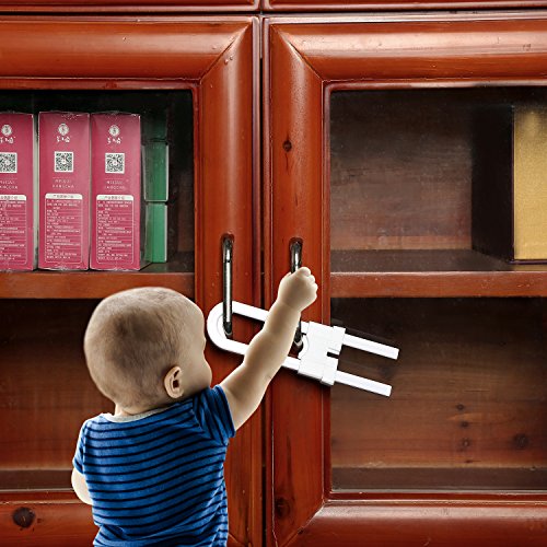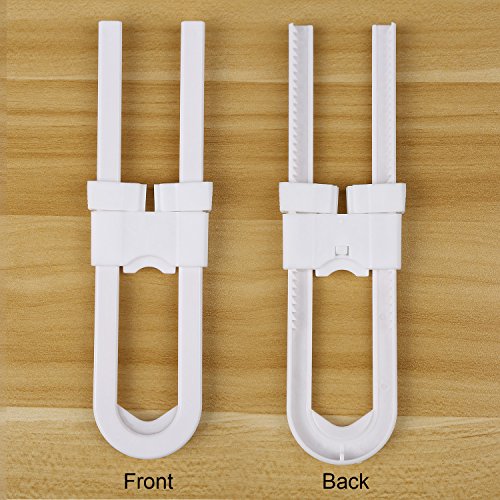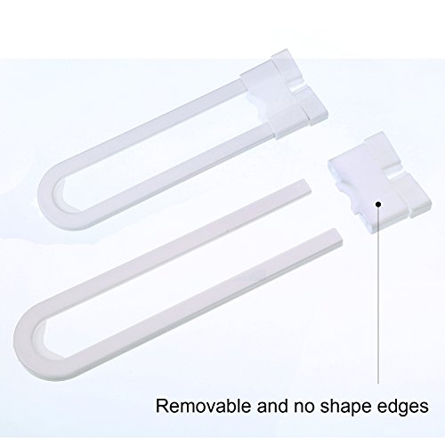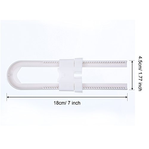 Bememo 6 Pieces Sliding Cabinet Locks Childproof Safety Locks Plastic U Shape Locks for Kitchen Bathroom Knobs and Handles, White