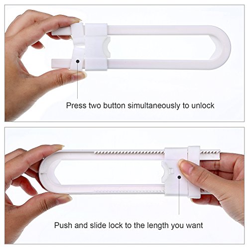 - Easy to operate: press two button simultaneously to unlock, push down and slide the lock tight against the handles, easy method, but you'd better avoid seen by your babies as they are good at learning