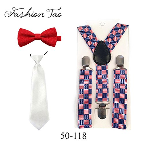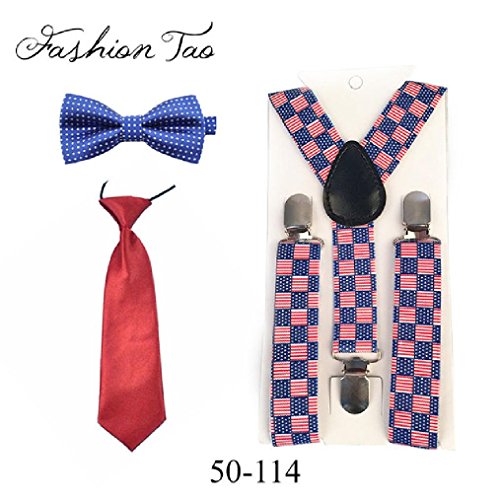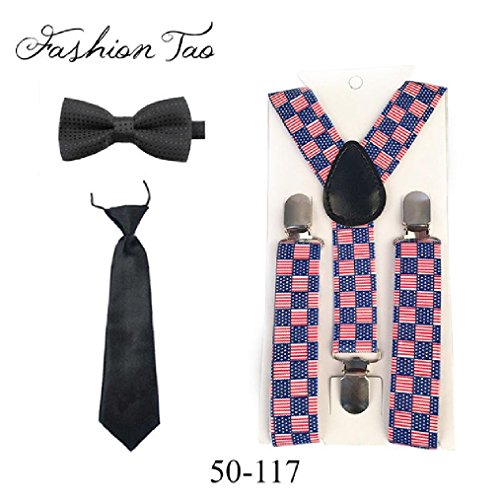Binding : Apparel Product Description Material:Braces Elastic and Metal ClipsBow Tie Tie:PolyesterMain Color: as the picture AVAILABLE SIZE: Braces:Length 65cm/25.6" Width 2.5cm/0.98"Bow Tie:Strap length: about 28cm/11"- 42cm/16.5" Bow Tie Length: about 10cm/3.9" Width about 2.4"(6cm)Tie:Length 28cm/ "Width 6.5cm/2.56"please be aware the color appearance can be vary due to different screen£¬ display resolution and lights conditions.Specification and Features:--Y-Back. Adjustable and elasticated with metal clips. --3 clips and 2 length adjusters add durability --Suit any formal occasion --Standard kids size. Length: about 65cm. Width: about 2.5cm --Suggest for kids height up to 130cm 0