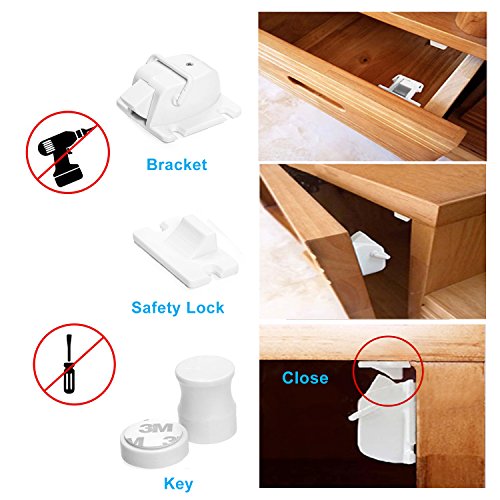✔ STRONG! NO TOOLS NEEDED! The Wifelab Cabinet Locks require no tools, drills or screws to install the safety locks. You don't want to damage the your office or kitchen furniture by drilling screws into it which keeps your home looking beautiful and invisibly safe and secure with the adhesive heavy duty latches kit! The powerful magnetic keys unlock the secure door with ease. We guarantee the benefit of invisible safety, simple installation and strong performance!