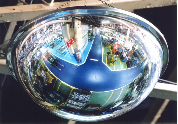 | 360度のドームミラーで、死角が消えて明るい環境づくりができます♪ミラーは反射率バツグンの高級アクリル製!!出合い頭の衝突防止や、室内防犯に役立ちます!! |
