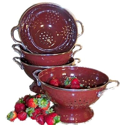 -. Title : Steel Core 3 Quart Enamel Colander Strainer - Beautiful Chocolate Raspberry Color