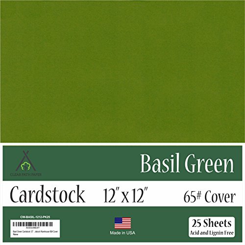 Basil Green Cardstock - 12 x 12 inch - 65Lb Cover - 25 Sheets