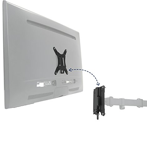 Mounting your monitors can be a challenge without removable VESA plates. That is why we created STAND-VAD2 which is a VESA monitor adapter system designed to simplify the mounting process. Rather than performing a balancing act while trying to secure your monitors, this kit comes with a separate VESA plate that is first attached to the back of your screen and then slides on and clips into a second bracket piece that is mounted to your monitor stand. Once clipped in, your monitor is held secure and can be tilted and rotated. This adapter kit is designed to fit VESA 75mm x 75mm and 100mm x 100mm mounting holes. The back bracket can be wall mounted but wall mounting hardware is not included. This adapter is tested to support up to 22 lbs.