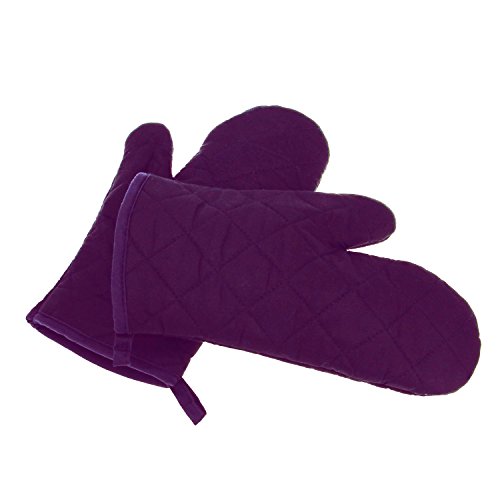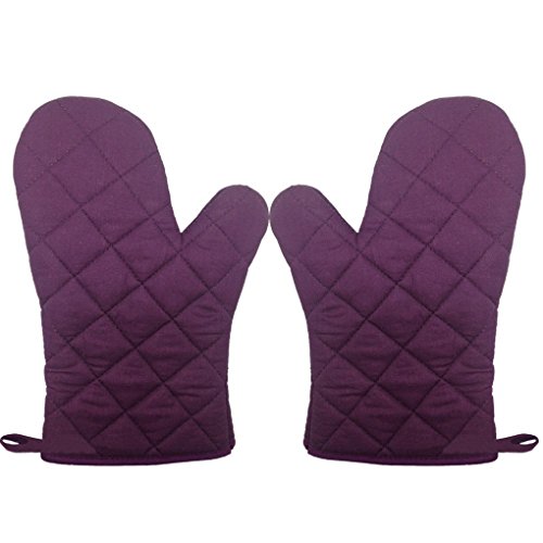 Witery® Home Kitchen Essential 1 Pair Thick Pure Cotton Baking Gloves Check Pattern Heat Resistant Insulation Oven Mitt Purple
