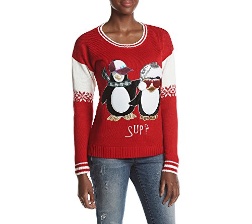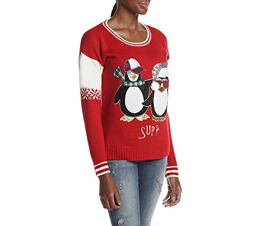 Blizzard Bay Women's Sup Penguin Light up Christmas Pullover Sweater, Christmas Red, XS
