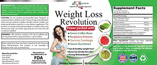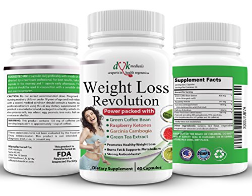 -. Binding : Health and Beauty -. Brand : DVK Medicals -. EAN : 0646437253550 -. Feature : ➤ Some times Gym and diets are just not enough. That's when Weight Loss Revolution comes in handy power packed with proven ingredients. It helps maximise energy and metabolism to allow natural fat burning (including the stubborn visceral fat) making it best fat burner. This makes you eat less but feel full and helps burn belly fat and stored fat than diet and exercise alone making it one of the best weight loss supplements for women and men that works fast / ➤ Manufactured in USA in FDA registered and inspected facility. GMP/NSF certified- high quality guaranteed / ➤ Best weight loss pills with multiple benefits :Healthy sustainable weight loss, Fat burner, Appetite suppressant, Thermogenic blend to enhance metabolism and boost energy levels without stimulants. Garcinia Cambogia- long known for its appetite suppression and blocking fat cell formation. The antioxidant properties of Green coffee bean, Raspberry Ketones and Green Tea promote cardiovascular health, lower cholesterol. / ➤ Weight Loss Revolution from DVK Medicals offers most Powerful blend of multiple, clinically proven and most effective ingredients making it one of the most complete and best weight loss pills for women and men. For optimum results, we always recommend taking this product in conjunction with healthy diet and exercise routine / ➤ For weight loss results you might consider extraordinary or if you are not keen on weight loss surgery, give Weight Loss Revolution a try. 100% satisfaction guaranteed or your money back, no questions asked! -. IsAdultProduct : 0 -. Label : DVK Medicals -. Manufacturer : DVK Medicals -. ProductGroup : Health and Beauty -. ProductTypeName : HEALTH_PERSONAL_CARE -. Publisher : DVK Medicals -. Studio : DVK Medicals -. Title : Weight Loss Revolution:Green Coffee Bean ,Raspberry Ketones ,Garcinia Cambogia,Green Tea :Thermogenic Fat Burner :Appetite suppressant :Lose belly fat :Natural Weight Loss Supplement for women men -. UPC : 646437253550