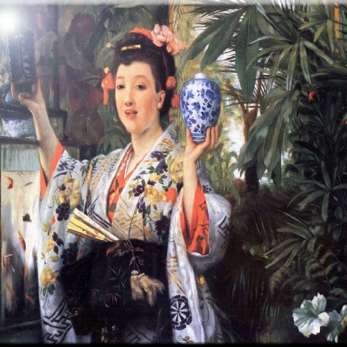 Rikki Knight RK-6intilec-3674 6" X 6" James Tissot Art A Young Woman Holds Japanese Goods Design Ceramic Art Tile