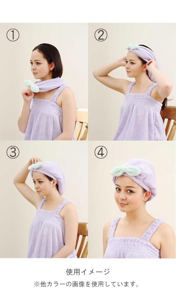 吸水性抜群のマイクロファイバー製の吸水ヘアターバン。長い髪もすっぽり包み、髪の水分をやさしく速く吸水します。