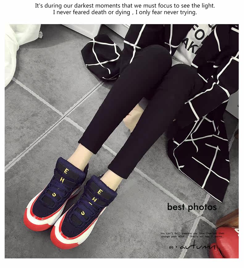 2016新款韩版运动单鞋女百搭厚底跑步鞋学生休闲女鞋内增高