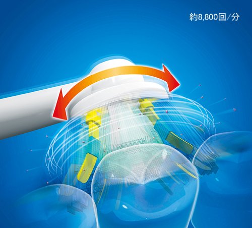 Float plaque firmly with about 40,000 times of up and down vibrations per minute, removing plaque floating with about 8,800 reversing vibrations per minute.