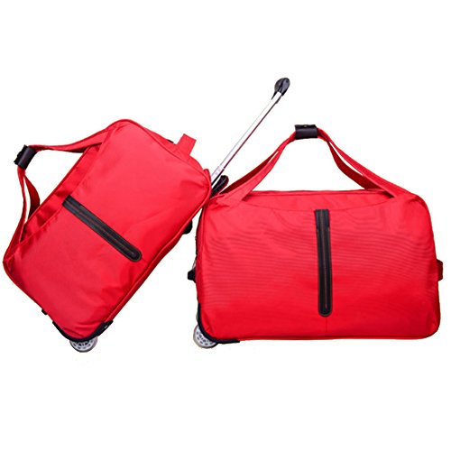 -. Feature : Rolling Duffel Tote Bag Trolley Suitcase / Material: Nylon; Size: 20 inch / 22 inch for option / Top handles, two way smooth zipper, durable waterproof / Two way for using: can be used as travel duffel tote, also a carry on lage bag / Perfect for weekend travel, daily travel, short business trip, enough room for clothes and traveling necessities