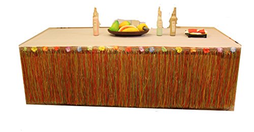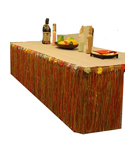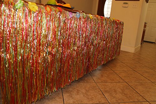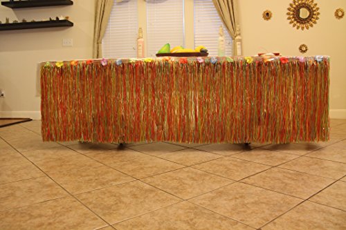 Table Skirt Heavy Duty Tropical Luau Multi Color Yellow Green Red String Hibiscus Leis Flower Party Decoration (9ft Long) by Vivj
