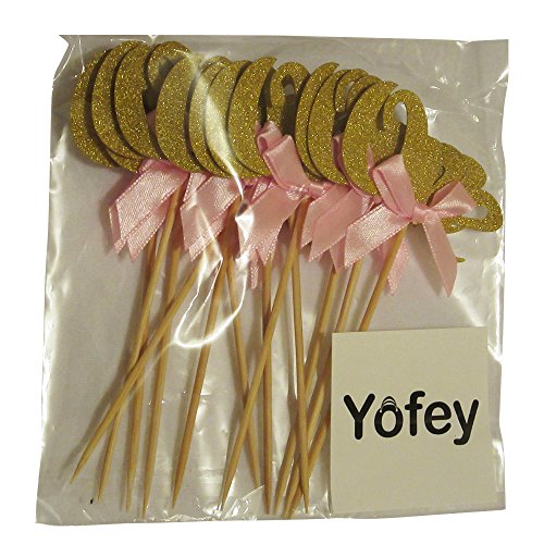 (YOFEY)/Kitchen Dining/Cook's Tools Gadgets/DIRECT FROM USA/Glitter Gold 1st Birthday Party Decoration. One Cupcake Cake Topper With Pink Bow 12CT. …