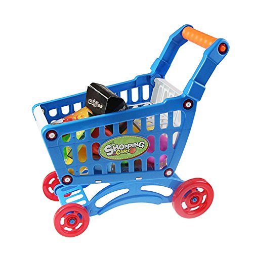 -. Title : Kids Mini Shopping Cart Supermarket with Full Grocery Food Grocery Pretend Game Toy Container Playset Blue