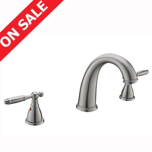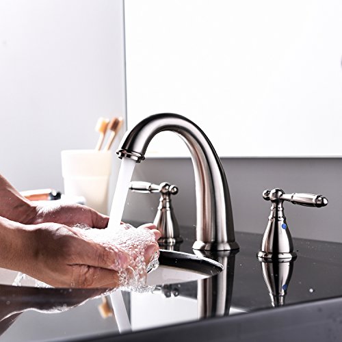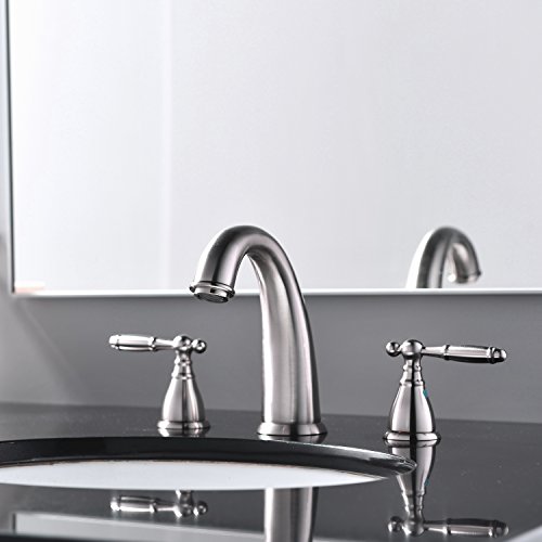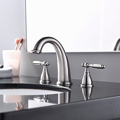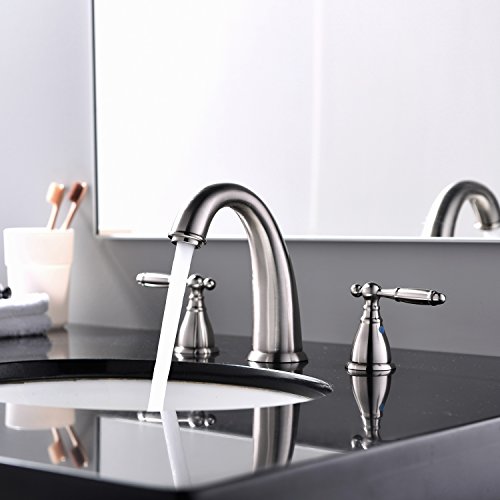 KINGO HOME Commercial Solid Brass Lavatory Three Holes Two Handle Lever Widespread Brushed Nickel Bathroom Faucet, Bathroom Sink Faucet Without Pop Up Drain