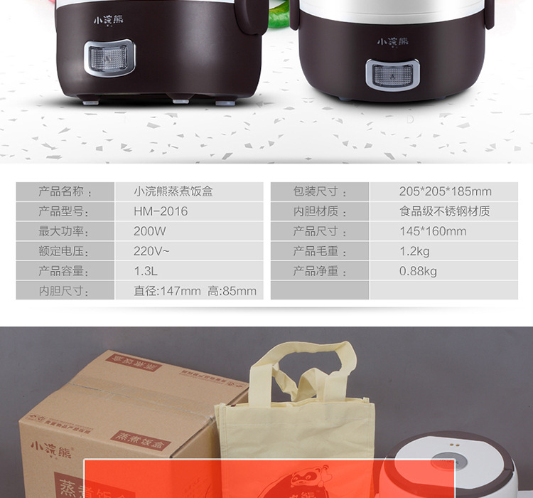 • 1 x Stainless Steel 1.3L Double Layer Electric Heating Cooking Unit