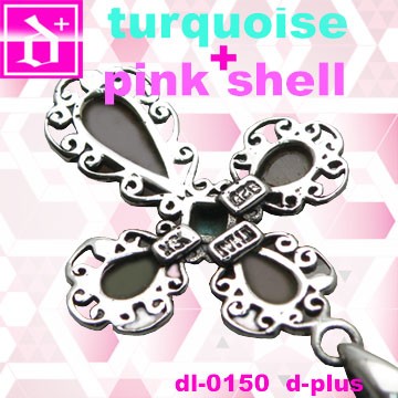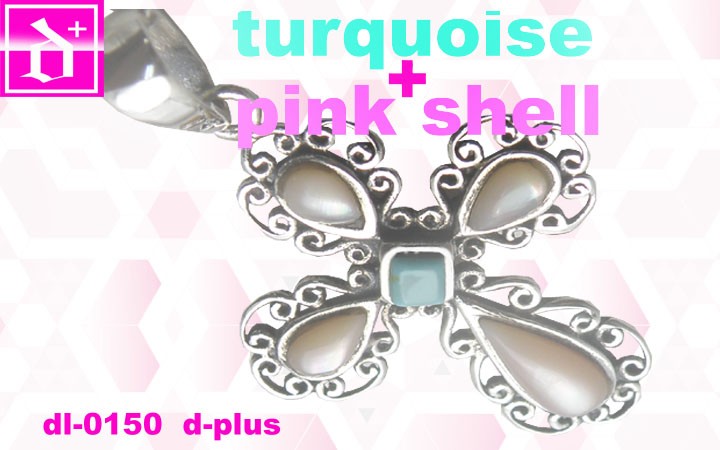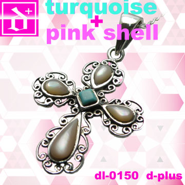 ピンクシェルを使ったクロスネックレス。光沢のあるキレイなピンクと、その周りのラグジュアリーなデザインが可愛さ、女性らしさをグンとアップしてくれます★真ん中のターコイズもポイント^^全体的に華奢な大きさなので、着けごこちも良さも人気の秘密!オススメです^^