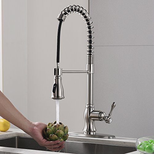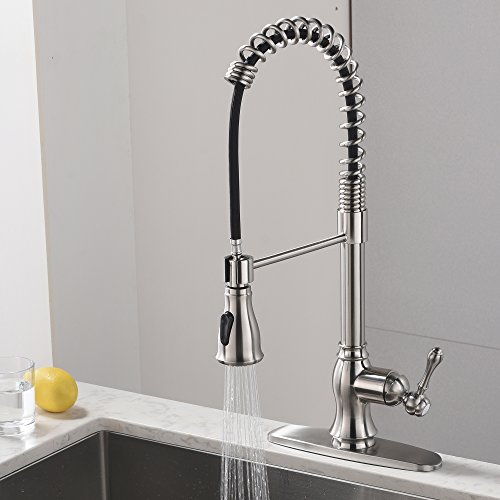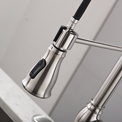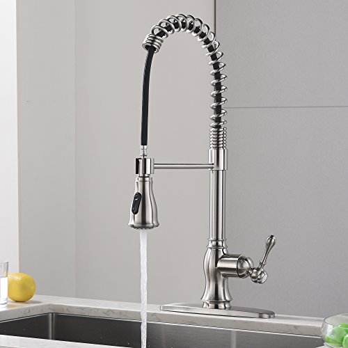 Comllen Best Commercial Brushed Nickel Stainless Steel Pull Out Sprayer Kitchen Faucet, Kitchen Sink Faucet with Deck Plate