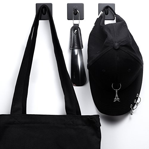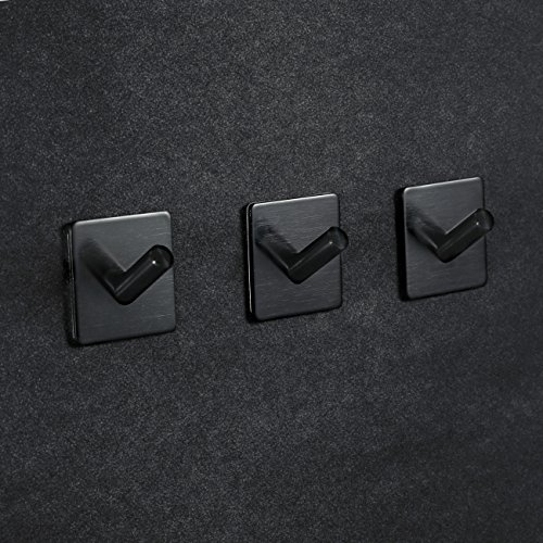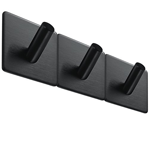 BasicForm Adhesive Hooks Brushed Stainless Steel Black (3 pack)