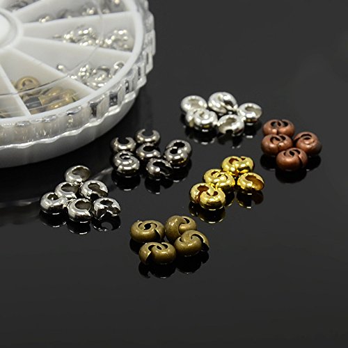 PEPPERLONELY Brand 1 Box Red Copper, Silver, Gunmetal, Platinum, Antiqued Bronze, Gold Tone Crimp Beads Covers 5x4mm