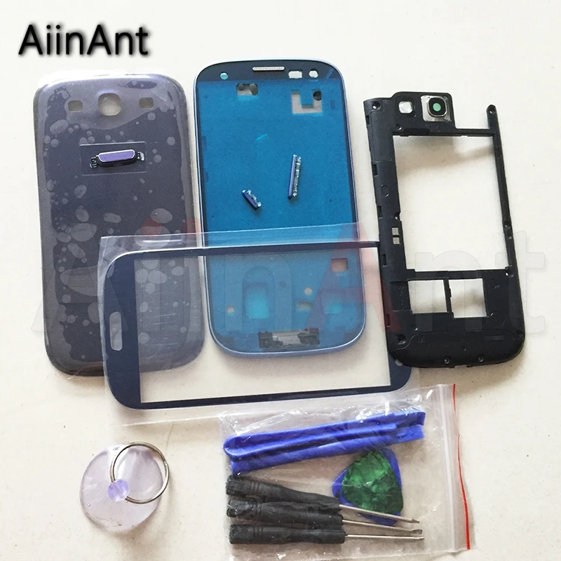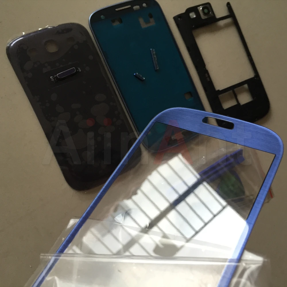 aiinantケース三星ギャラクシーs3ネオi9300 i9301 9300iフルハウジングミドル前面ベゼルフレーム戻るバッテリーカバータッチガラス
