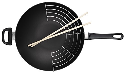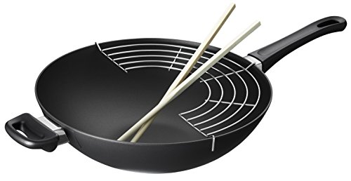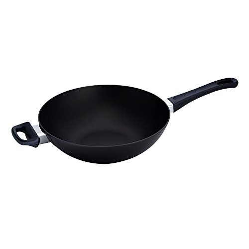 Create a delicious stir-fry with this Classic wok from Scanpan. Made of heavy-duty, pressure-cast aluminum, this pan ensures quick, even heating with no hot spots. With ceramic-titanium nonstick technology, food is never left behind in the interior of the pan. The patented spring-lock handle stays cool during stovetop use. Oven safe to 500 degrees Fahrenheit and backed by a manufacturer's lifetime warranty, this wok also dishwasher safe for easy cleanup.12-1/2" diameter