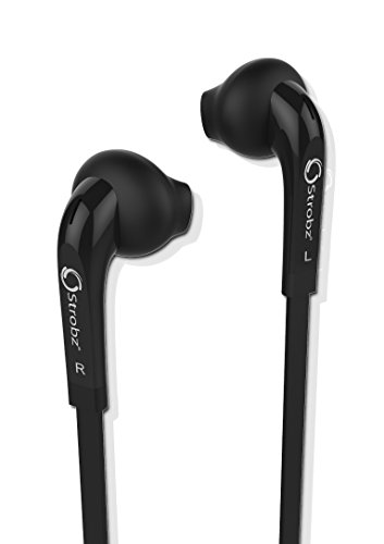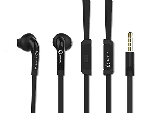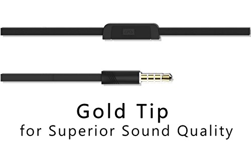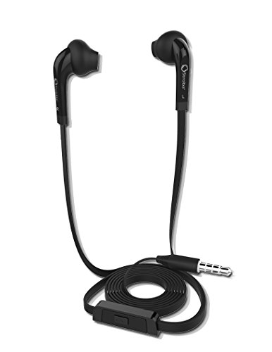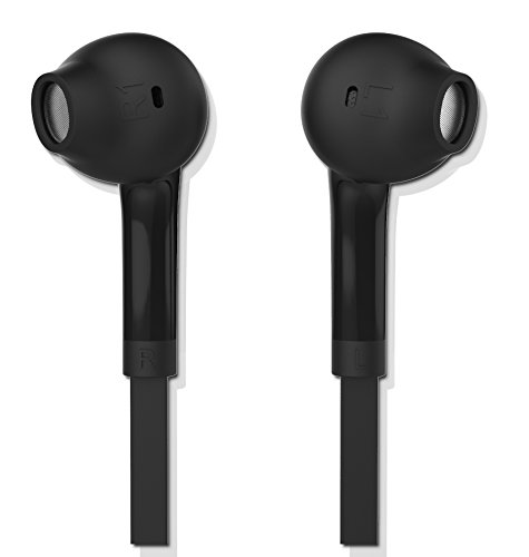 PREMIUM BASS Stereo In-Ear Headphones / Earphones | Multi Function Button | iPhone Earbuds with Mic | For Android and iPhone | Sweat Proof | Tangle Free Flat Cable | Sports Headset | Black [1 Pack]