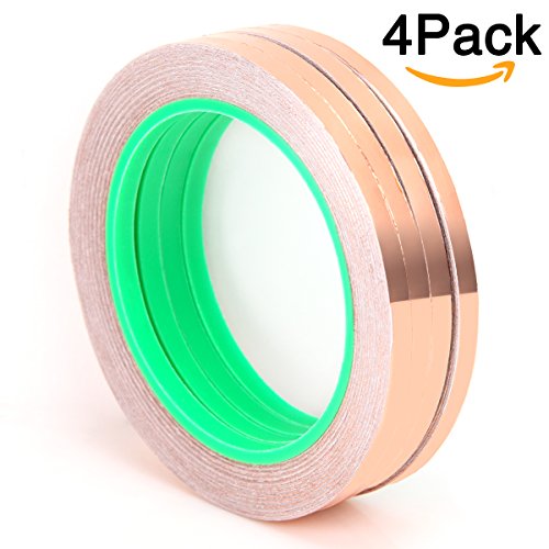 4 PACK Copper Foil Tape, 66 Feet Double-sided Copper Foil Conductive Tape for EMI Shielding, Stained Glass, Soldering,Electrical Repairs,Slug Repellent,Paper Circuits,Grounding ( 0.25"inch width)