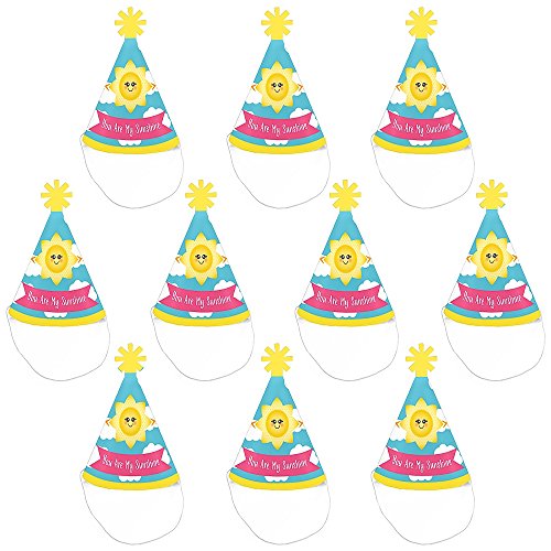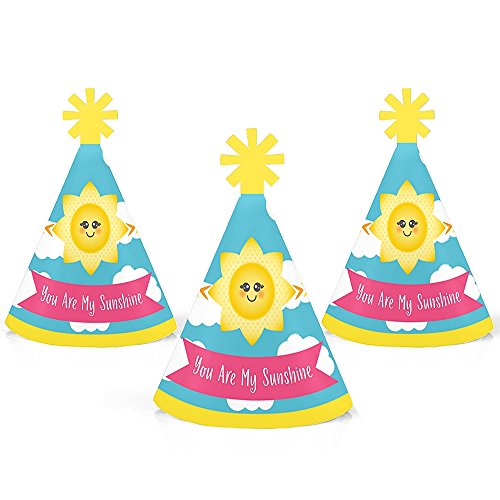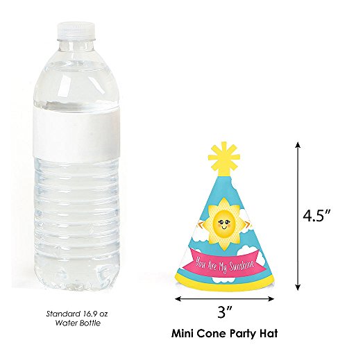 -. Feature : You Are My Sunshine Mini Party Hats INCLUDES 10 blue, pink and yellow sunshine party hats with elastic chin straps. Mini baby shower or birthday party hats will fit both children and adults. / 10 You Are My Sunshine party hats SIZE 4.5 inches tall and 3 inches in diameter at the base. The included elastic chin straps measure 12 inches long. These cute sunshine yellow party accessories feature a unique star cut-out decoration at the top and the P.R.Inted saying "You Are My Sunshine". / FUN SUNSHINE PARTY ACCESSORIES: You Are My Sunshine mini party hats are perfect for your little miss sunshine party. This set of cute tiny party hats will help you take adorable baby shower or birthday photos. Best of all, mini party hats are perfectly sized for adults, kids, and even pets, so everyone can get in on the photo fun. Little party hats are sure to be enjoyed by all your friends and family! / PREMIUM MINI PARTY HATS: Set of 10 You Are My Sunshine mini party hats are professionally P.R.Inted on heavy-duty card stock paper with a photo-like shine. They are individually inspected, then carefully packaged. You Are My Sunshine mini cone baby shower or birthday party hats will arrive flat, with the chin straps attached. Easy assembly is required. Simply roll the party hat into a cone shape and slide the tab into the slot to secure. / MADE IN THE USA: You Are My Sunshine - Mini Cone Baby Shower or Birthday Party Hats are designed and manufactured at our Wisconsin facility using materials that are Made in the USA.
