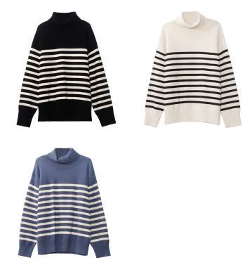 首まであったか♪定番人気のボーダーニットプルオーバーです。
