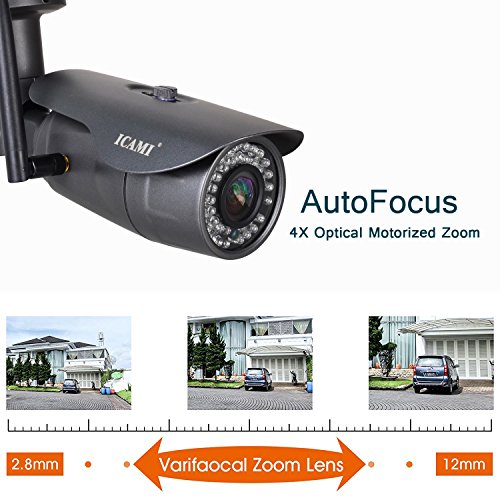 -. Title : Auto Zoom ICAMI HD Outdoor Security Camera Wireless Wifi Home Surveillance IP Camera 1.3 Million Pixels Waterproof Motion Detection Night Vision with 2.8-12mm 4X Optical Motorized Zoom