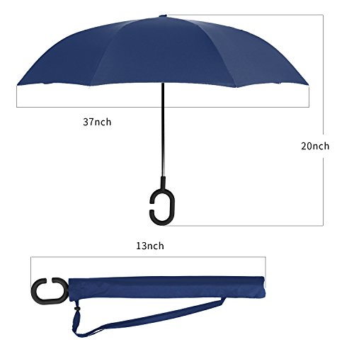 -. Feature : BENEFIT FROM OUR EXQUISITE CAR UMBRELLA: Solve the problem of space-saving in your car, by carrying our compact umbrella, instead of large and bulky ones! It's beautiful, practical and it also features a C-shape handle that leaves your hands free! / SMART INWARD FOLDING DESIGN: Different from any other similar product, AmbrellaOK Umbrellas utilize an smart drip-free inward folding design. This way, it's their dry side that faces outwards once you fold them - forget about messy puddles and wetness on your car's floor! / SUPERIOR QUALITY MATERIALS: When it comes to our inverted car umbrellas, we make a point of using nothing but premium quality windproof fabrics, durable fiberglass, and Nano-waterproof technology; this product is three times as waterproof as your common umbrella! / AMAZING GIFT IDEA! - Whether for your best friend, your sister or your significant other, our double-layer inverted car umbrella is the best present you can think of; smart, extremely practical, affordable and impressive to look at! / CHOOSE FROM A VARIETY OF COLORS! - Not all of us are the same - why should it be any different for our car umbrellas? Choose the one that suits you best among a wide variety of colors - you are bound to find exactly what you're looking for!