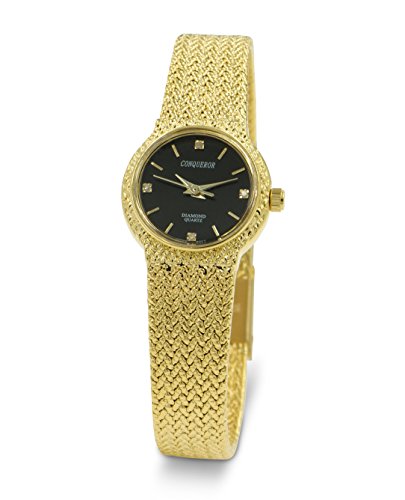 Conqueror Gold-Tone Mesh Bracelet and Diamond Women's Quartz Dress Round Watch
