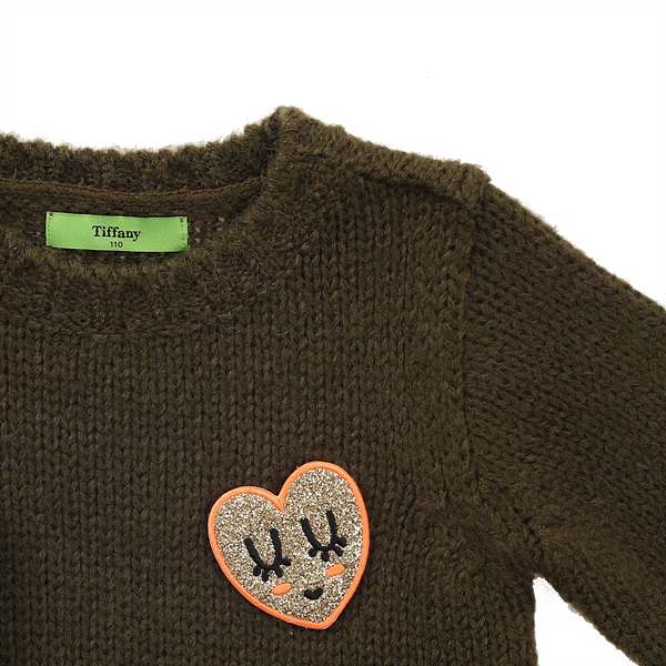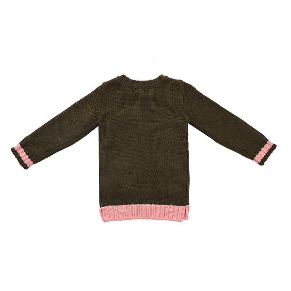 상세설명-카키컬러에 핑크,오렌지컬러가 배색이 되어 화사하면서도 여성스러운 분위기의 니트티셔츠입니다.