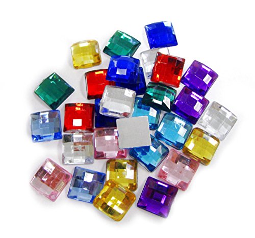 Linpeng Acrylic Flat Back-O1 Assorted Colors Faceted Square Acrylic Flat Back (30 Pack), 12 x 12mm