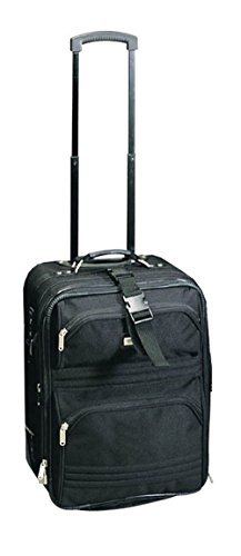 -. Feature : Made of rugged 1800d polyester / Expands 2" extra, but still a carry-on / 2 shoe pockets & a zip mesh pocket & a pouch for accessories in main compartment / Locking pull-up handle & recess wheels for easy maneuverability / Color: Black