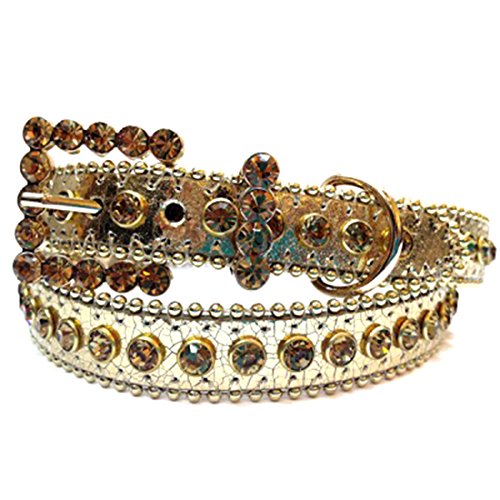 -. Binding : Apparel -. Brand : Crazy4Bling -. ClothingSize : Medium -. Color : Gold -. Department : girls -. Feature : Narrow belt in high quality rhinestones. Little girls belt made in genuine leather accented in a row of large high quality rhinestones as well as on the small buckle. The belt has small gold tone beads all around the edges of the belt for a luxurious look and extra comfort. Very chic and versatile narrow belt in high quality rhinestones.,Features: metal leash ring,Material: genuine leather and rhinestones,Width: 3/4",Size: S/M: 23" - 27" -. Model : BM-LOVE-1224G-SM_M -. MPN : 3677 -. PackageQuantity : 1 -. PartNumber : 3677 -. ProductGroup : Apparel -. ProductTypeName : ACCESSORY -. Size : Medium -. Title : Girls Gold Tone Leather Belt with Brown Rhinestones Size S/M