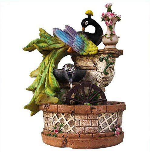 SINTECHNO SNF13201-1 Artistic Elegant Peacock Resting on Ivy Column with Tabletop Water Wheel Fountain