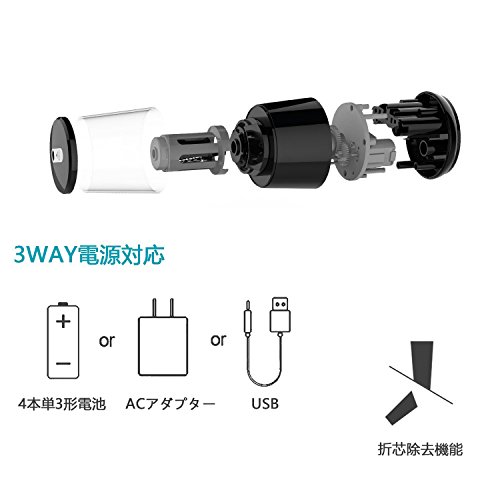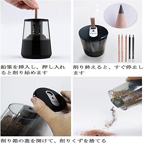 大容量なクズケース、処理簡単:超大容量、透明鉛筆削りのダストボックス、削りくずの処理が簡単です。1度に20回数の削りくずが収容することができるので、頻繁な取り外すことは要りません。 | ACアダプター・USB・単3形乾電池(4本)で給電を行うことが出来ます。場所を選ばず持ち運びできます。 | コンパクト: 持ちやすいコンパクト設計でゴミ捨てラクラク! パッケージ内容: ★本体 ★USBケーブル ★ACアダプター ★専用掃除ブラシ ★取扱説明書 |