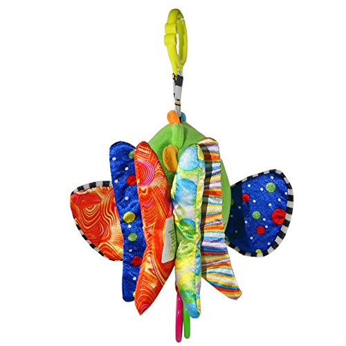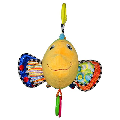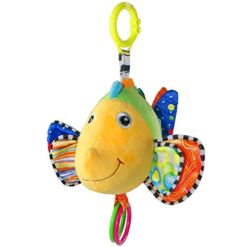 Stimulates Baby's Vision and Auditory Skills Vivid colors deepen babies' recognition of colors. Sounds like music and crinkle also help stimulate and develop baby's auditory skills. Finally, fish's large, friendly eyes invite baby to focus and stare at a single object, which can help calm baby while supporting healthy eye development.
