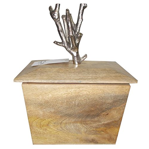 - This unique nature inspired textured aluminum twig branch and weathered wood accent box will add a touch of the outdoors to your home décor. The box is 7.5x9.5x6.5" and measures a total of 16" tall and 10" across with a removable lid that has a 6.5" branch on top, weighs 3.95 lb. Material: 20% Aluminum& 80% wood. Makes a great gift. Each piece is handmade and might have slight variations. From the Jardin Collection by Nicholas Walker