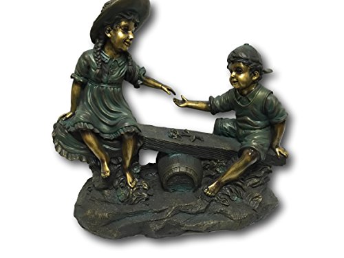 Loui Michel Cie Samantha's Garden Boy and Girl Sitting on A Seesaw Statue