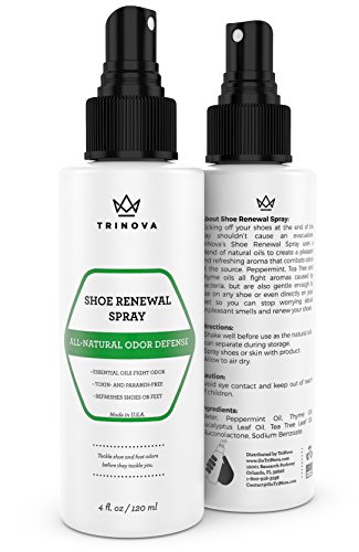 -. Title : Natural Shoe Deodorizer - Safe Spray for Feet and Smelly Cleats, Socks & More. Eliminate odor from sweat with pure tea tree, mint and thyme oil. 4oz - TriNova